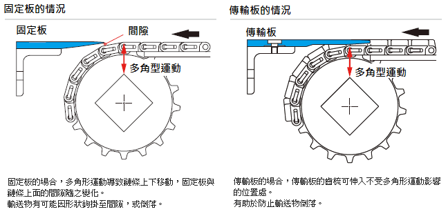 - 鍊條節(jié)距(19.05mm)小,可對(duì)應(yīng)輕量小容器輸送